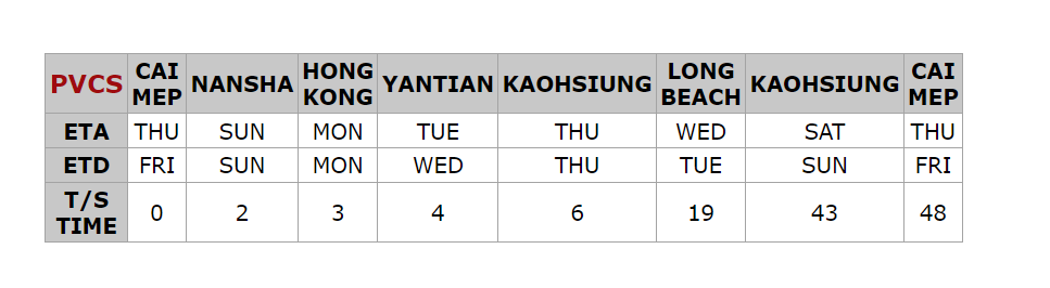 ■ 航程:14 天快船從 YANTIAN to LONG BEACH,CA